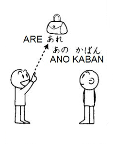 SORE – “that” indicating to something unspecified near the speaker. Once again if you look to the image on the right the speaker is pointing to the bag in the listeners hand and saying SORE.