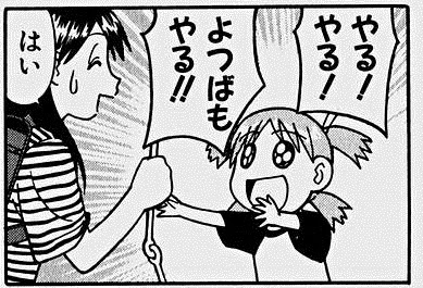 *NOTE: in manga and colloquial Japanese する is often replaced by the infromal やる. (See the panel from Yotsuba-To! above)